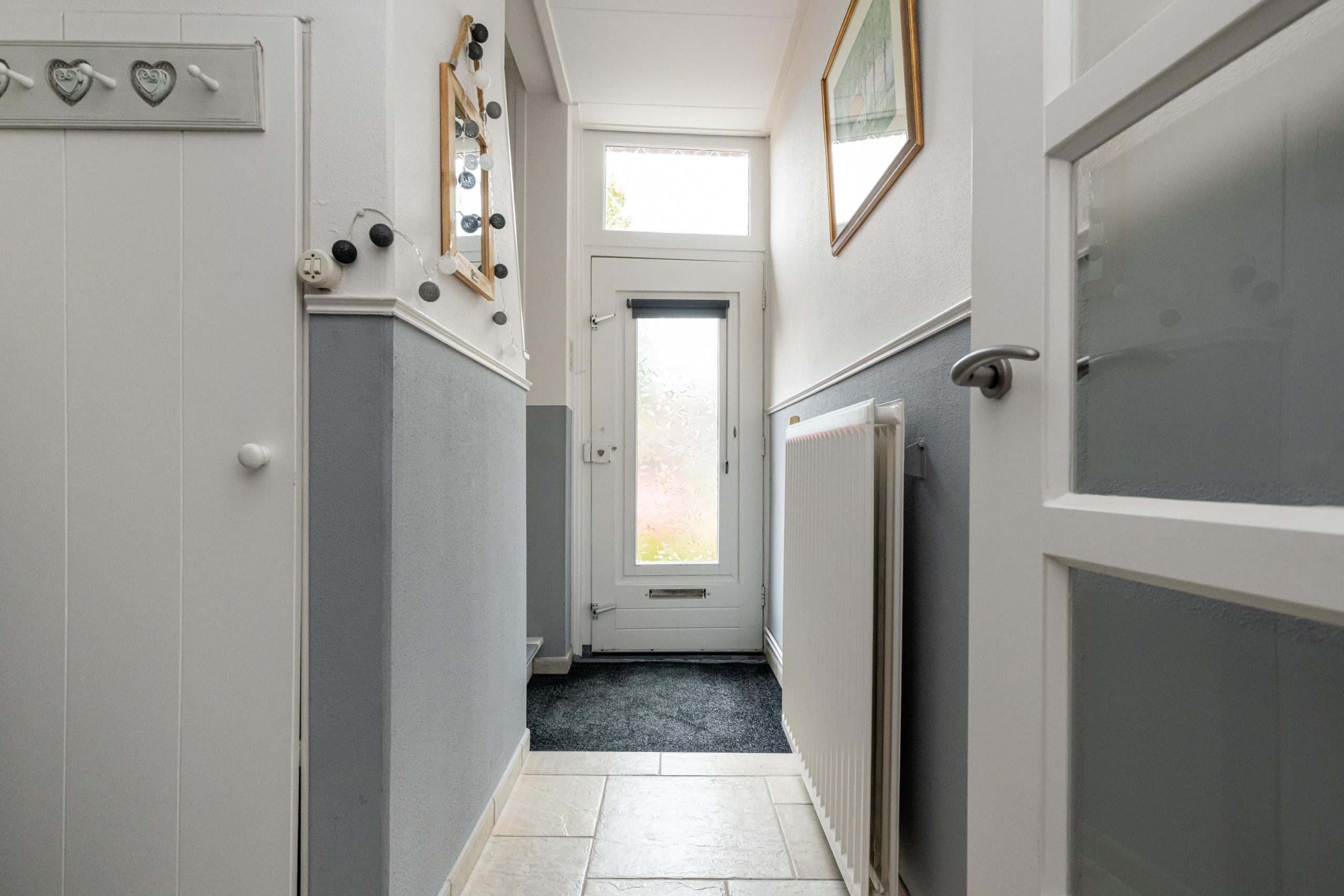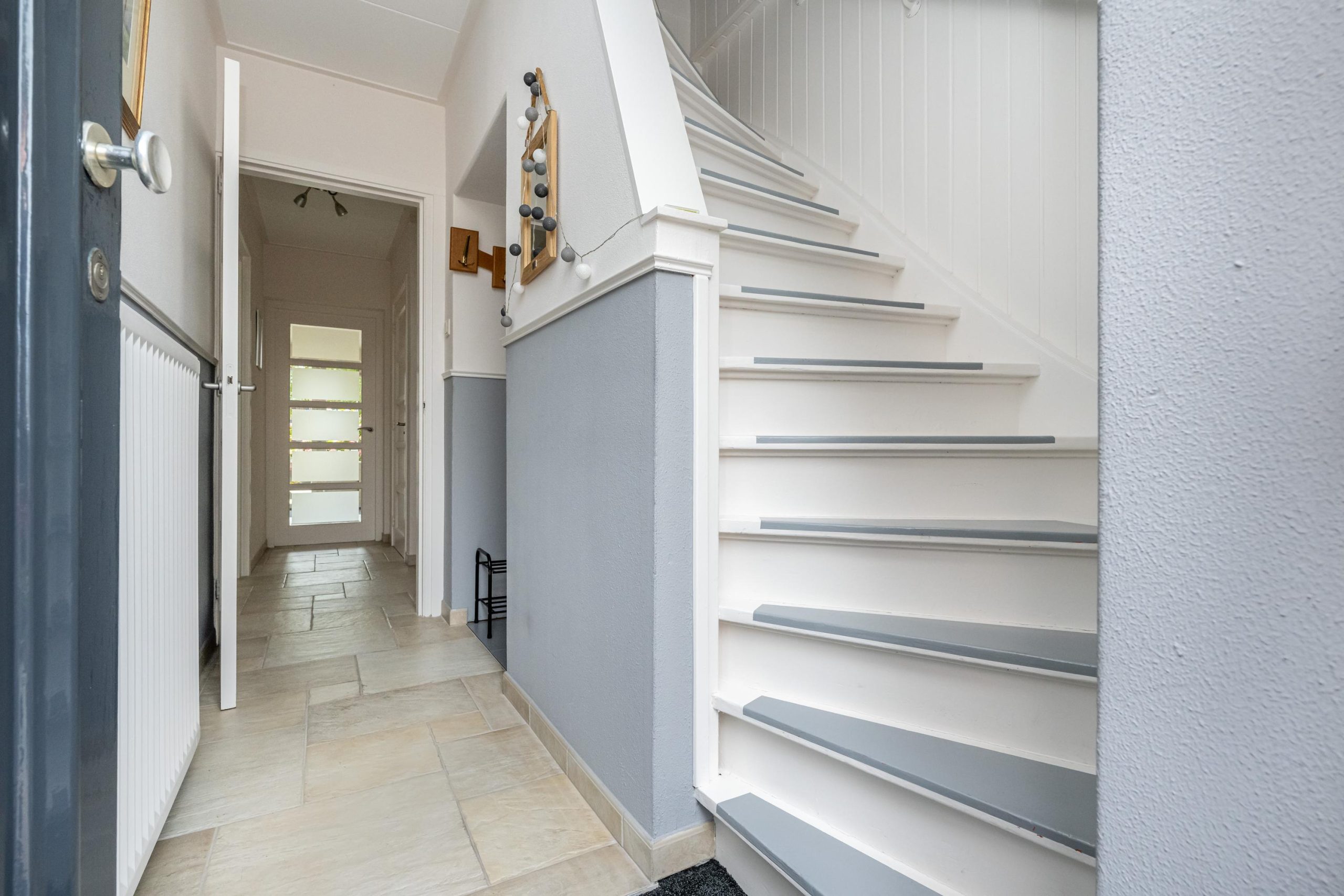 Hal (3.25mx0.95m), meterkast, vaste trap naar eerste verdieping.