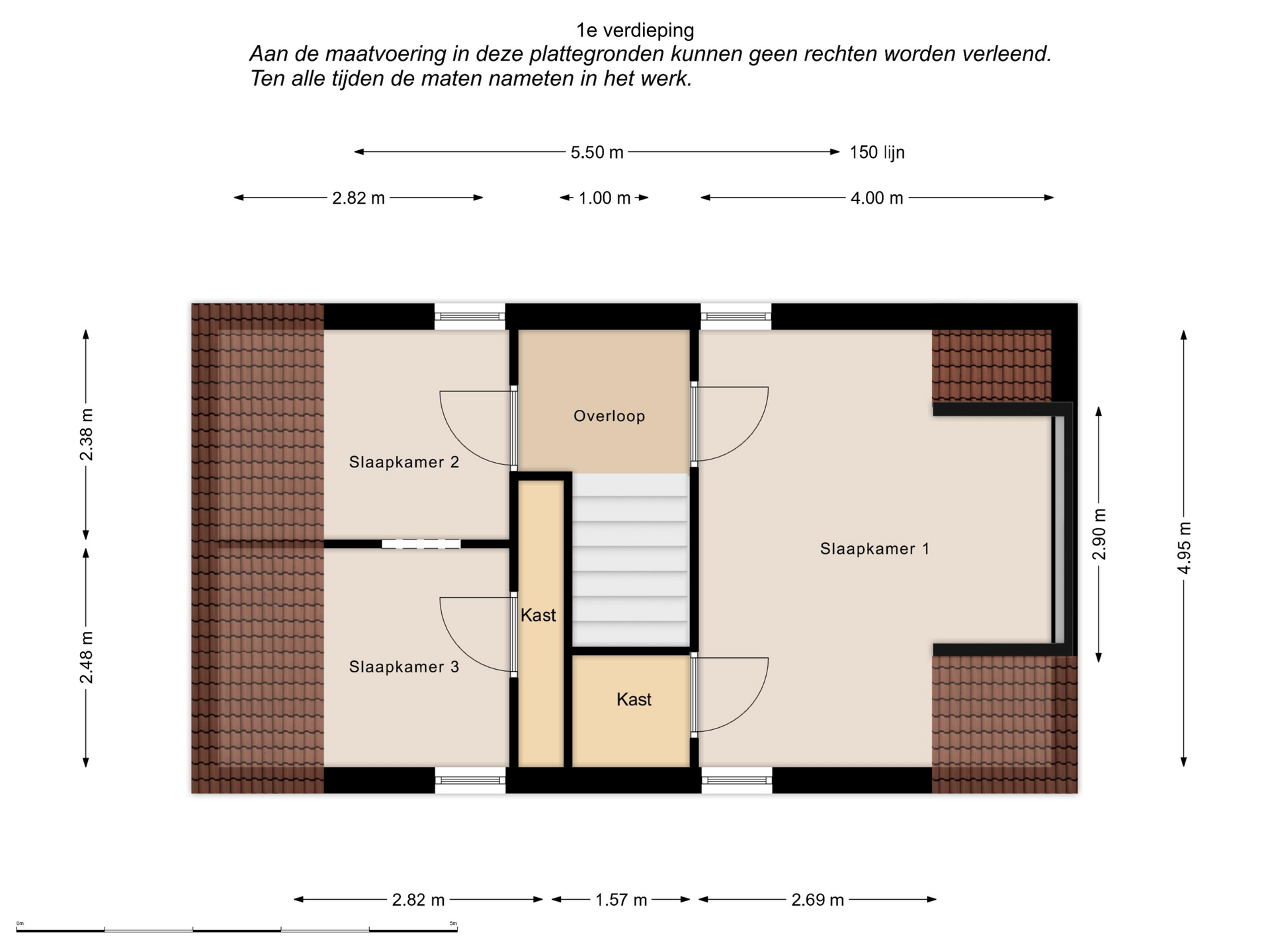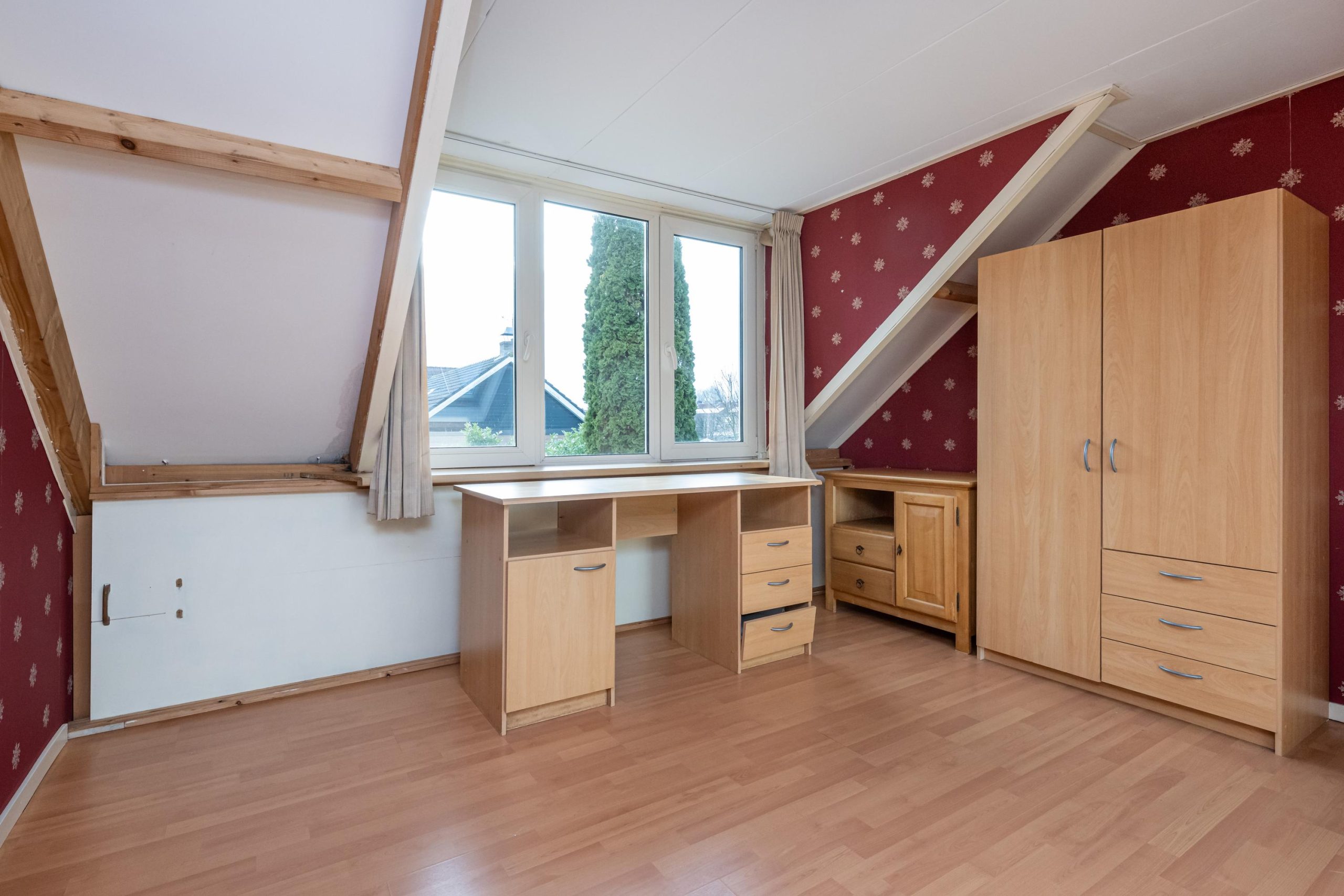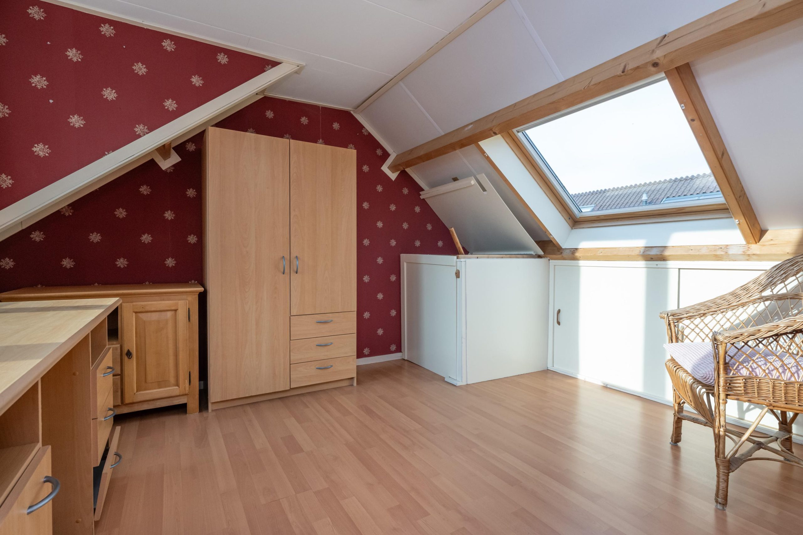 Slaapkamer 1: (4.95mx4.00m), dakkapel en vaste kast.