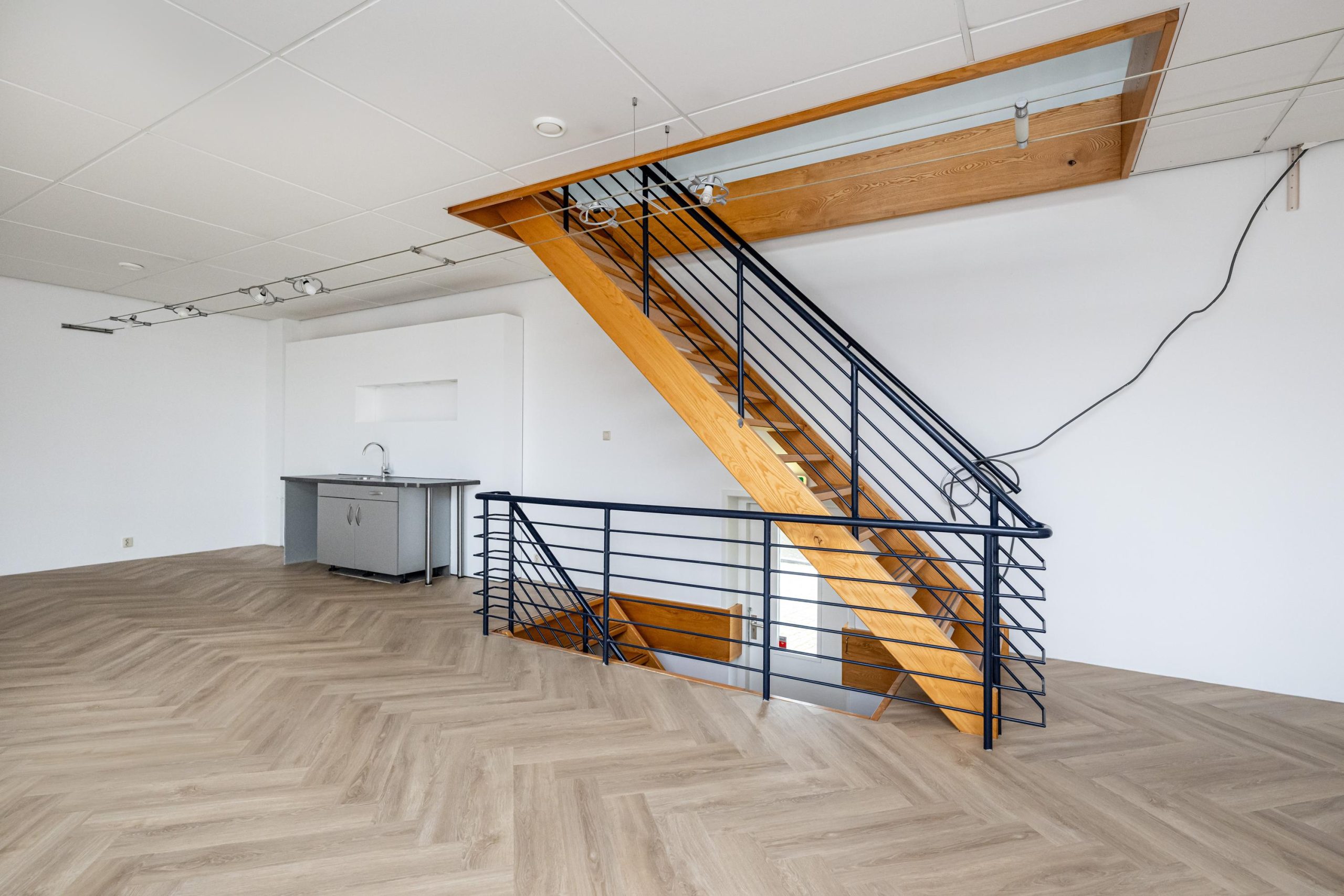 • stalen trapopgang met hardhouten treden;
