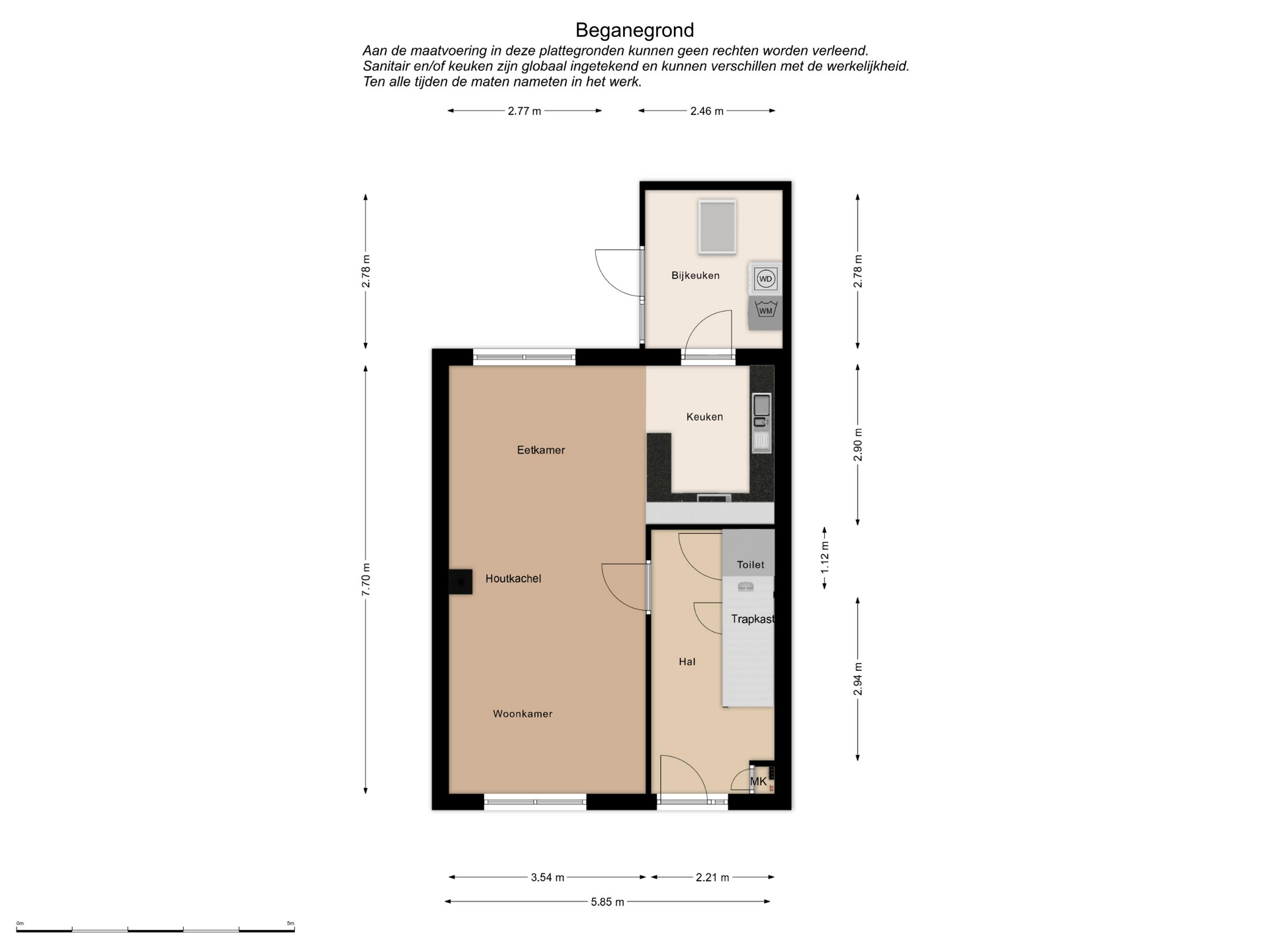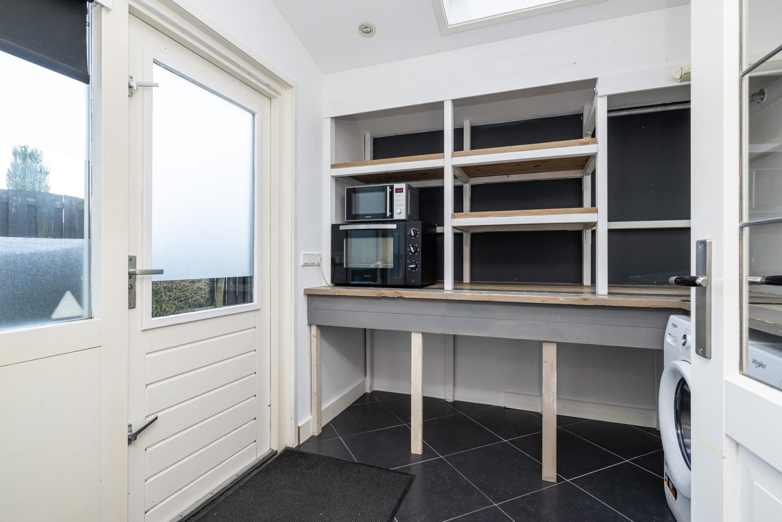 Toegang tot bijkeuken (2.78mx2.48m) met lichtkoepel, opstelplaats witgoed-aansluitingen.
