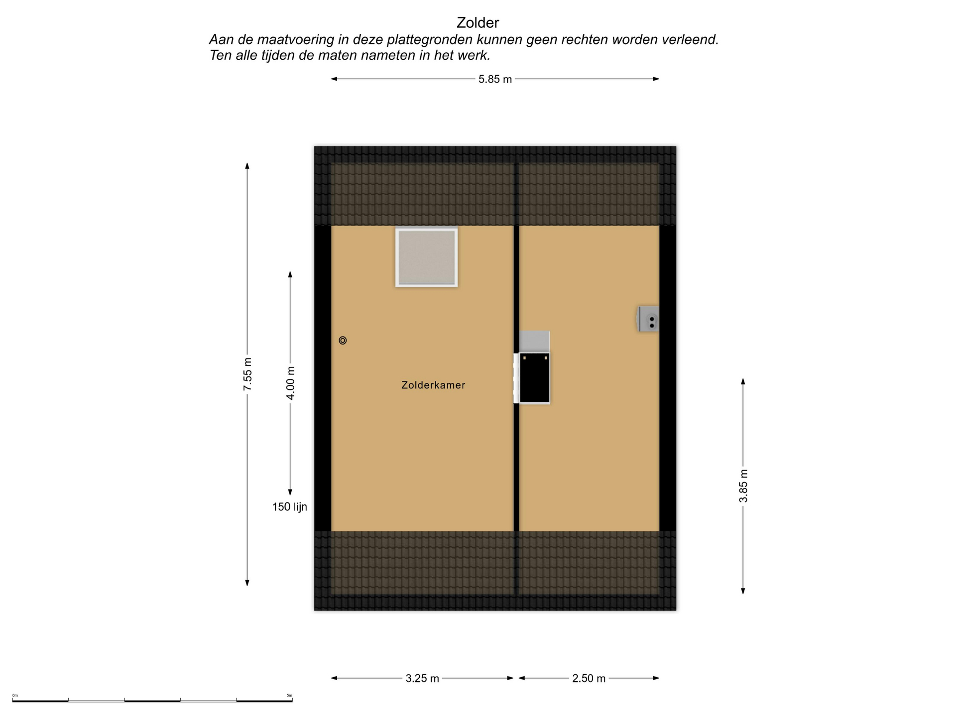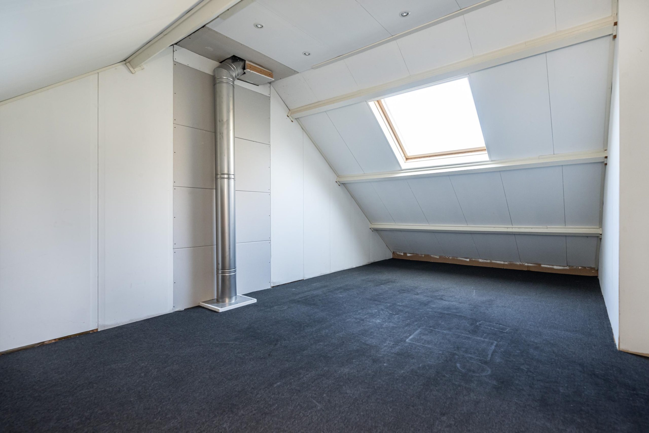 Extra ruime zolderkamer (7.55mx3.25m), hoogte 2.55m met Velux-dakraam.