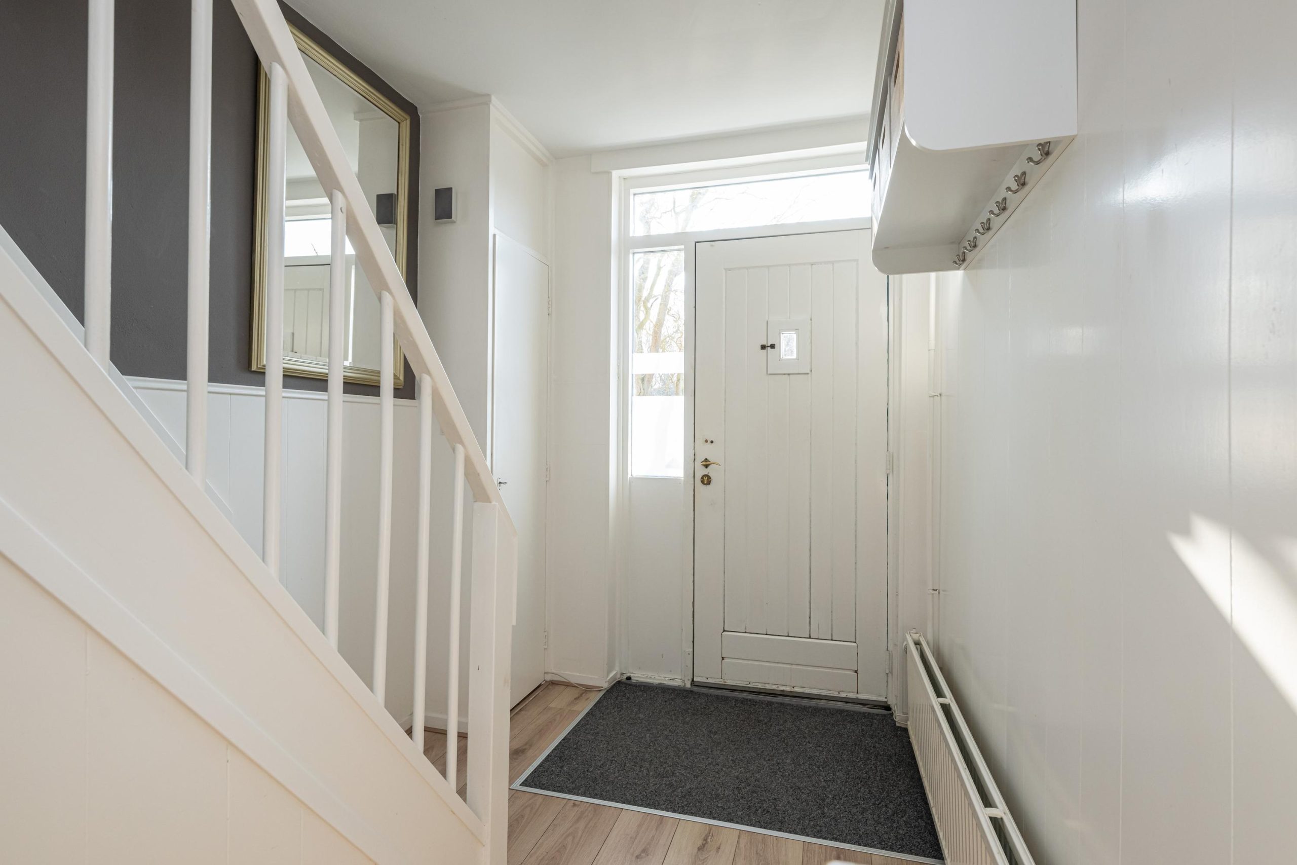 Entree/hal (4.75mx2.07m) met meterkast, garderobe, toilet (1.12mx0.85m) met fonteintje. Vanuit de hal bereik je de lichte woonkamer (7.70mx3.54m) met woongedeelte aan voorzijde en nieuwe houtkachel,