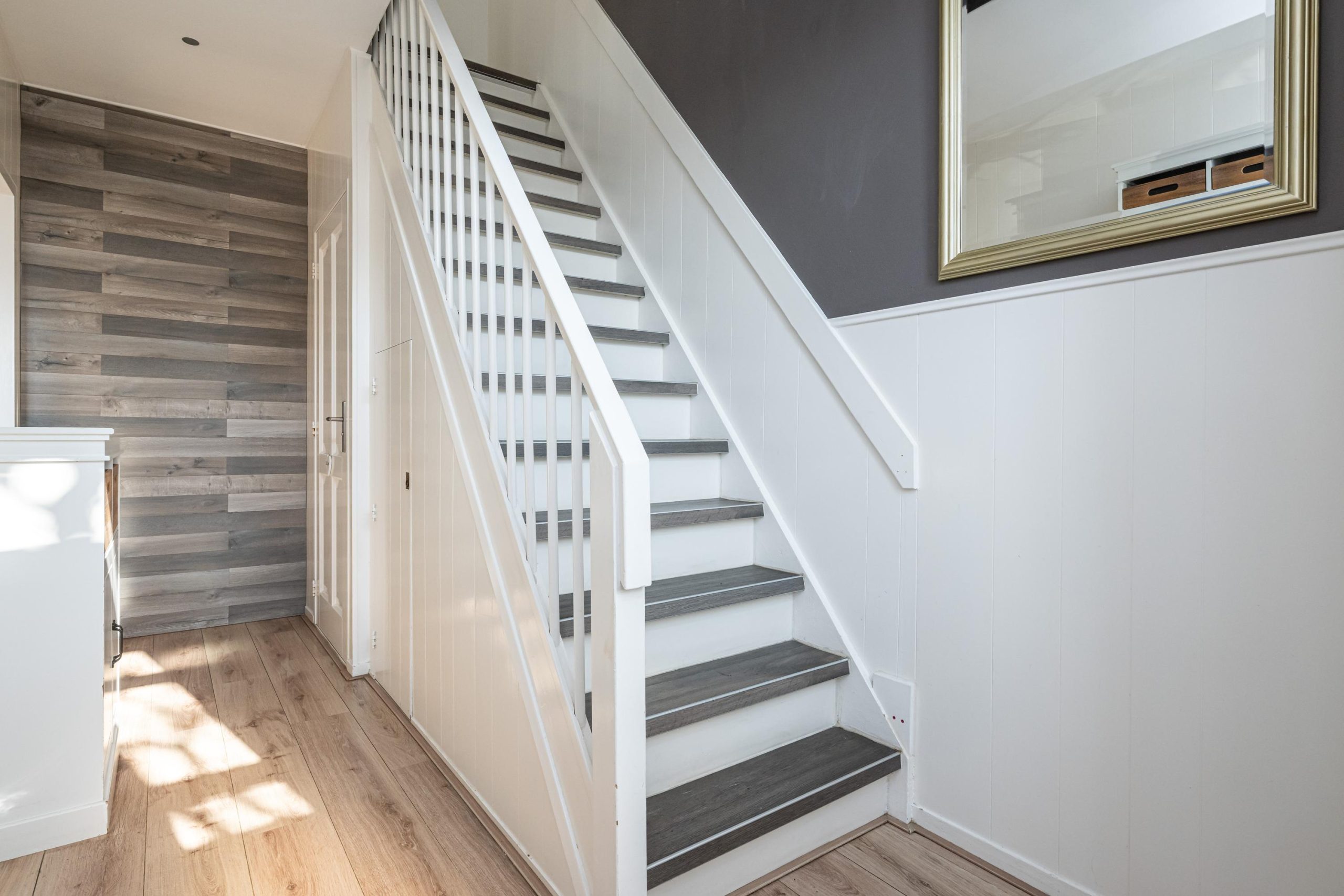 Overloop, 3 slaapkamers en moderne badkamer .