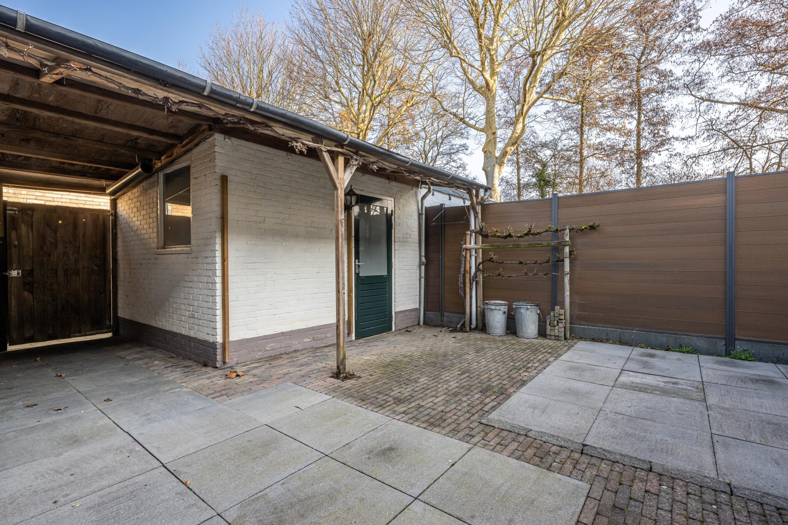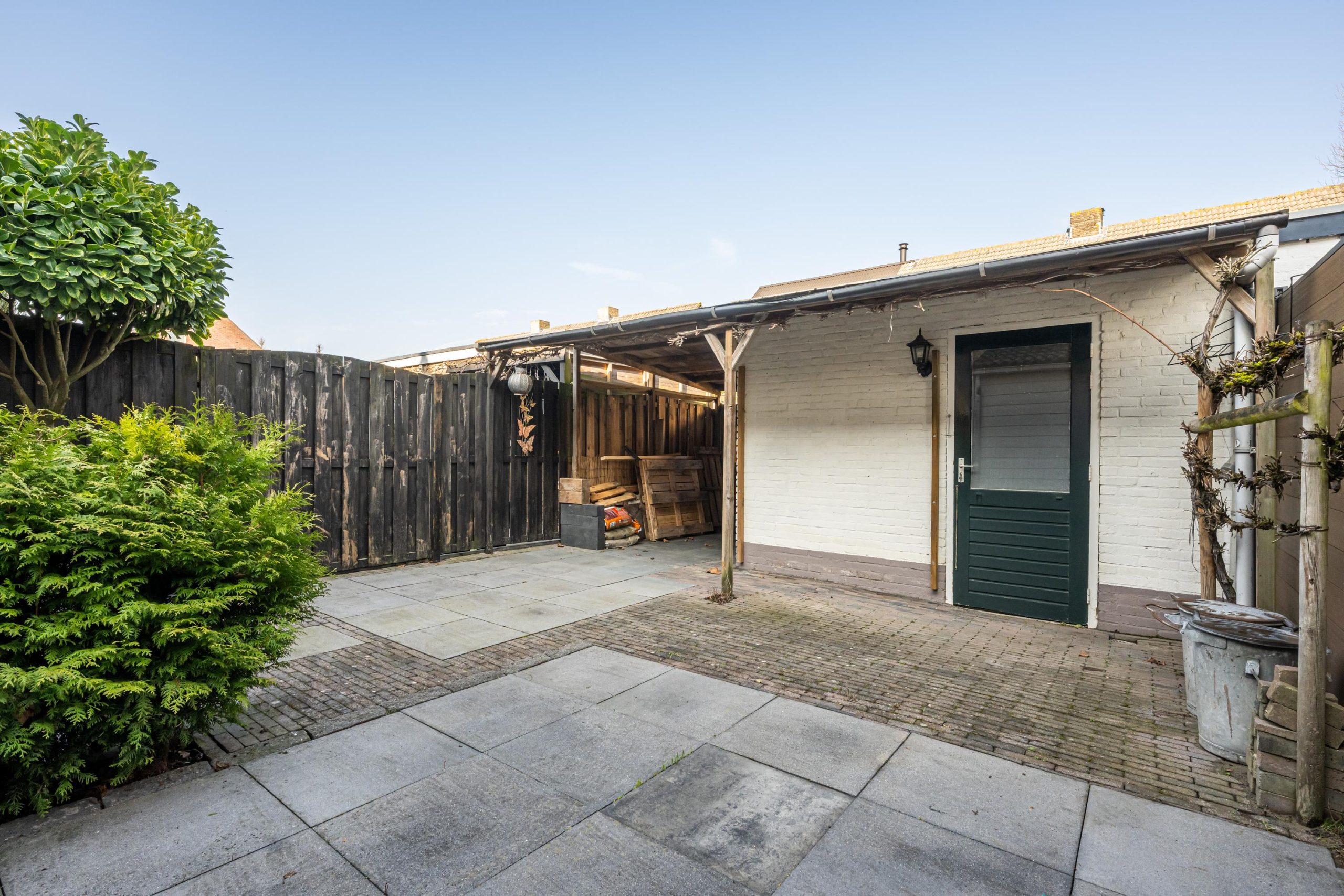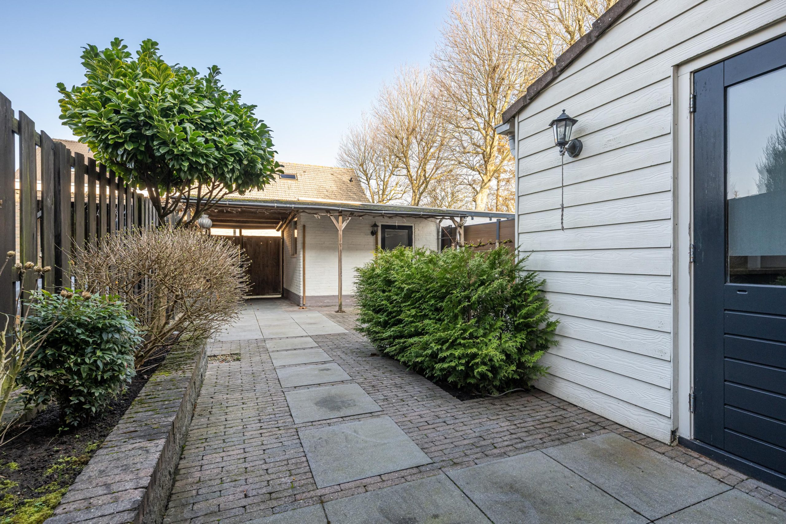 Fraai aangelegde onderhoudsarme achtertuin (12.00mx6.00m) met ligging op Noordwesten, achterom bereikbaar.