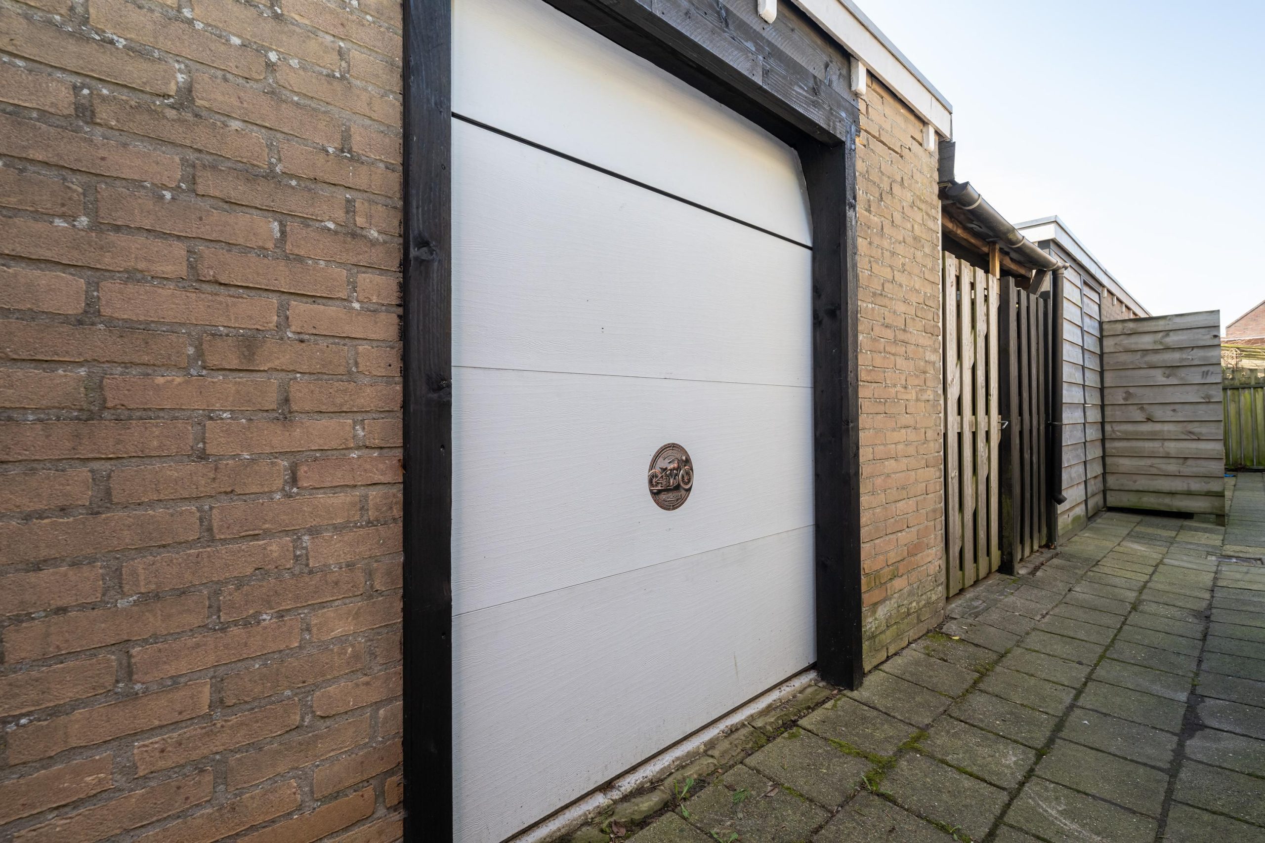 Stenen berging (2.95mx3.50m) voorzien van elektrische sectionaal-deur voor het stallen van een motorfiets en/of andere fiets(en).